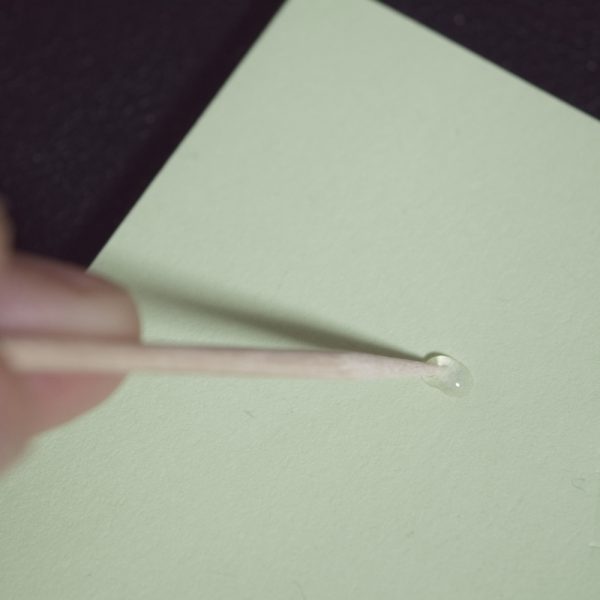 続いて、切り出したプラバンを接着剤で貼り付けます。