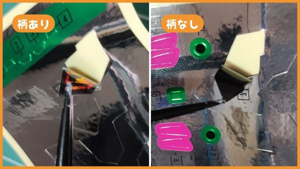 ホイルシールは2種類準備されており、1つは何と接着面に柄が印刷されています。