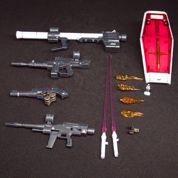 RX-78にしては武装が多いです。バズーカに加え肩の機関砲、ビームライフルも2丁あります。