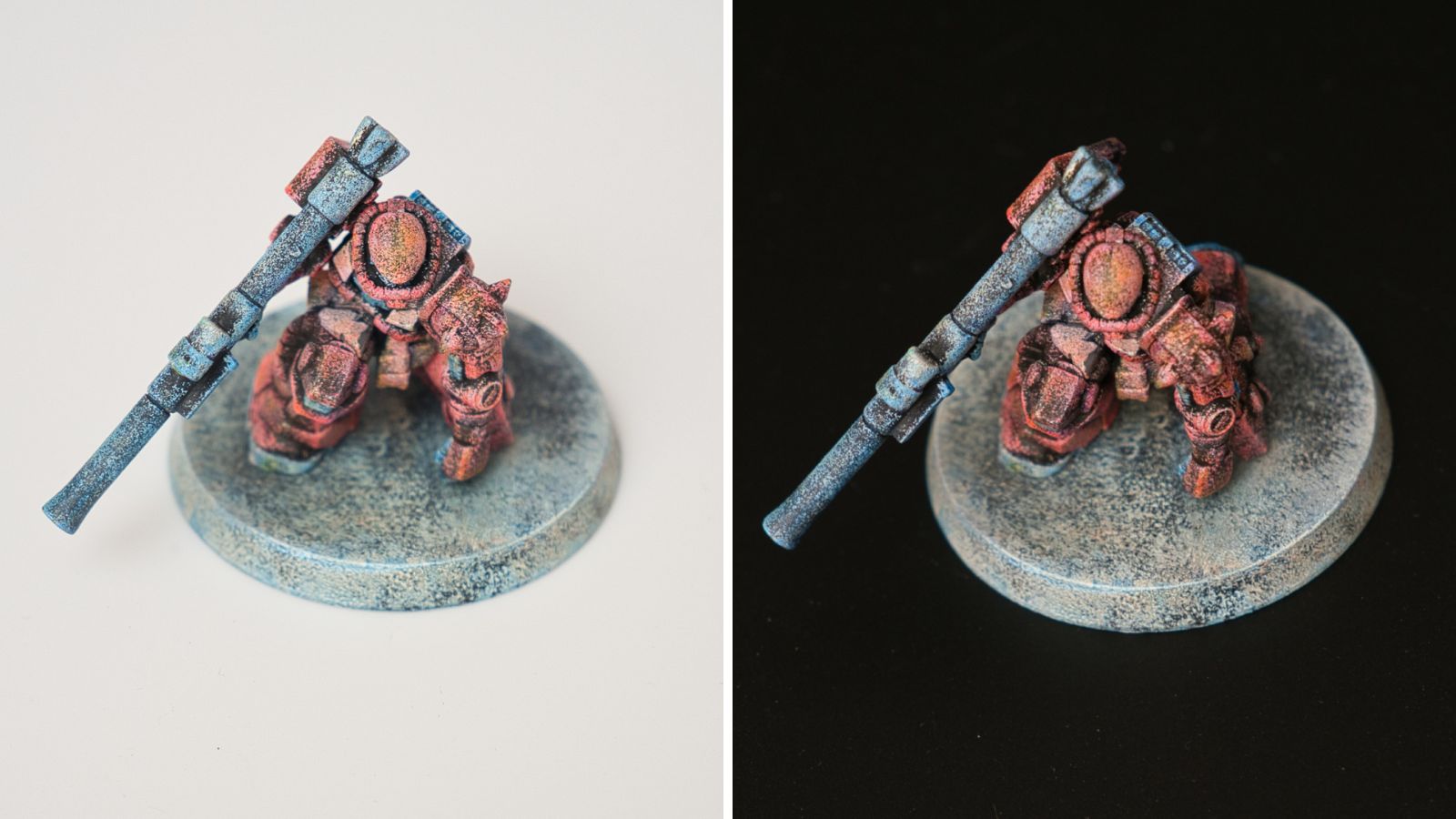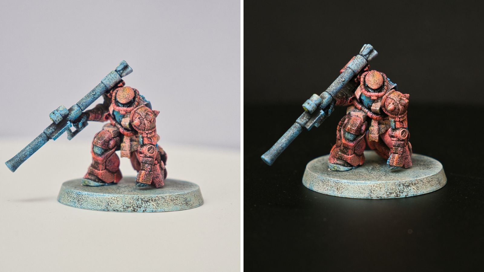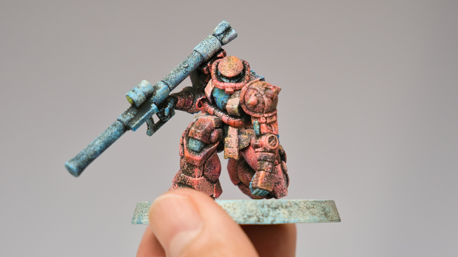 背面。バックパックや後部装甲の塗装ディテールが見える。