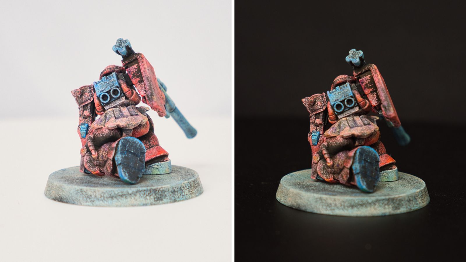 スポンジ塗装で「影」筆塗りで「光」を表現しています。