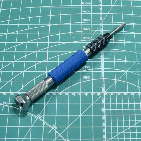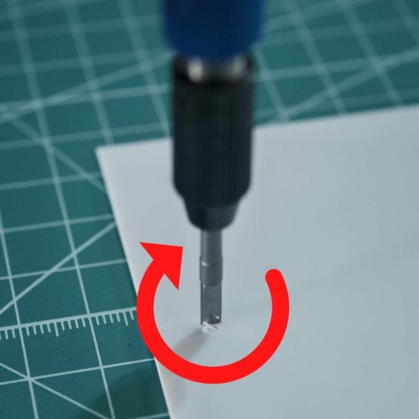 実際にスピンモールドを使用するときは写真のようにピンバイスというアタッチメントに装着して使用します。