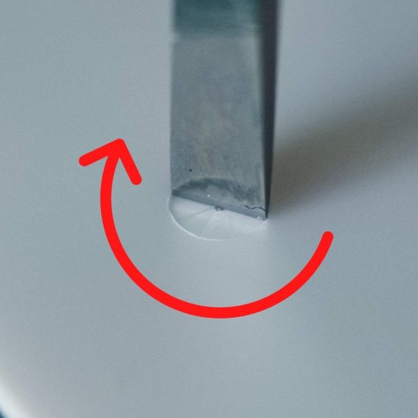 センターピンを彫りたい場所の中心に刺し、時計回りに回転させて彫ります。