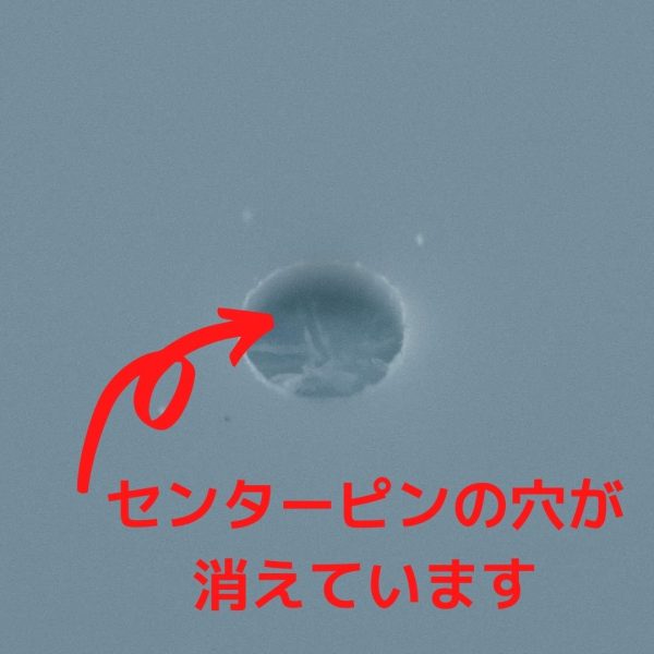 ・スピンモールドでは丸モールド(センターピン跡あり)