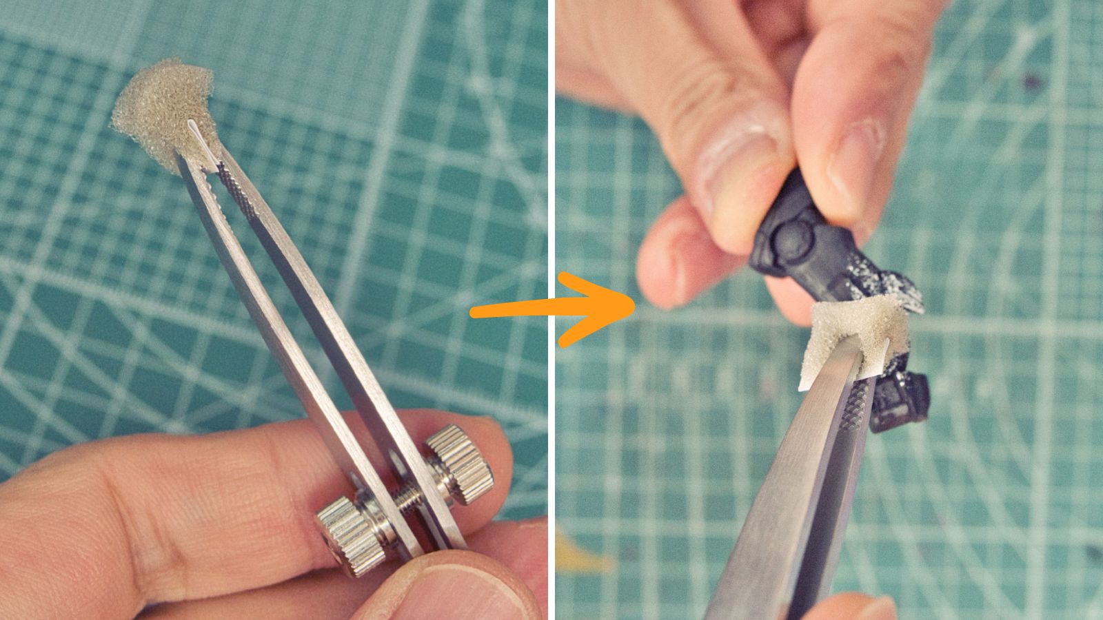 このピンセットは本来はスポンジヤスリなどを挟んで、ヤスリ掛けや研磨作業に使う道具です。